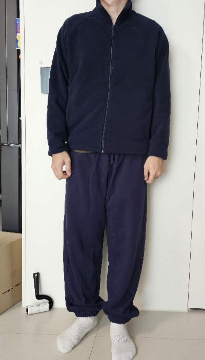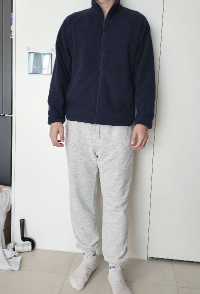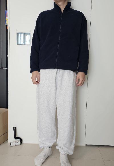 XL: 저스트 핏으로 허리와 다리가 딱 맞는 느낌이었어요. 전체적으로 슬림하게 떨어지는 핏이라 깔끔한 스타일을 선호하는 분들에게 추천합니다. 활동성을 살리기 위해 일부러 여유를 두고 입는 조거팬츠 스타일과는 조금 다르게, 몸에 딱 맞게 입고 싶은 분들에게 잘 맞을 거예요.