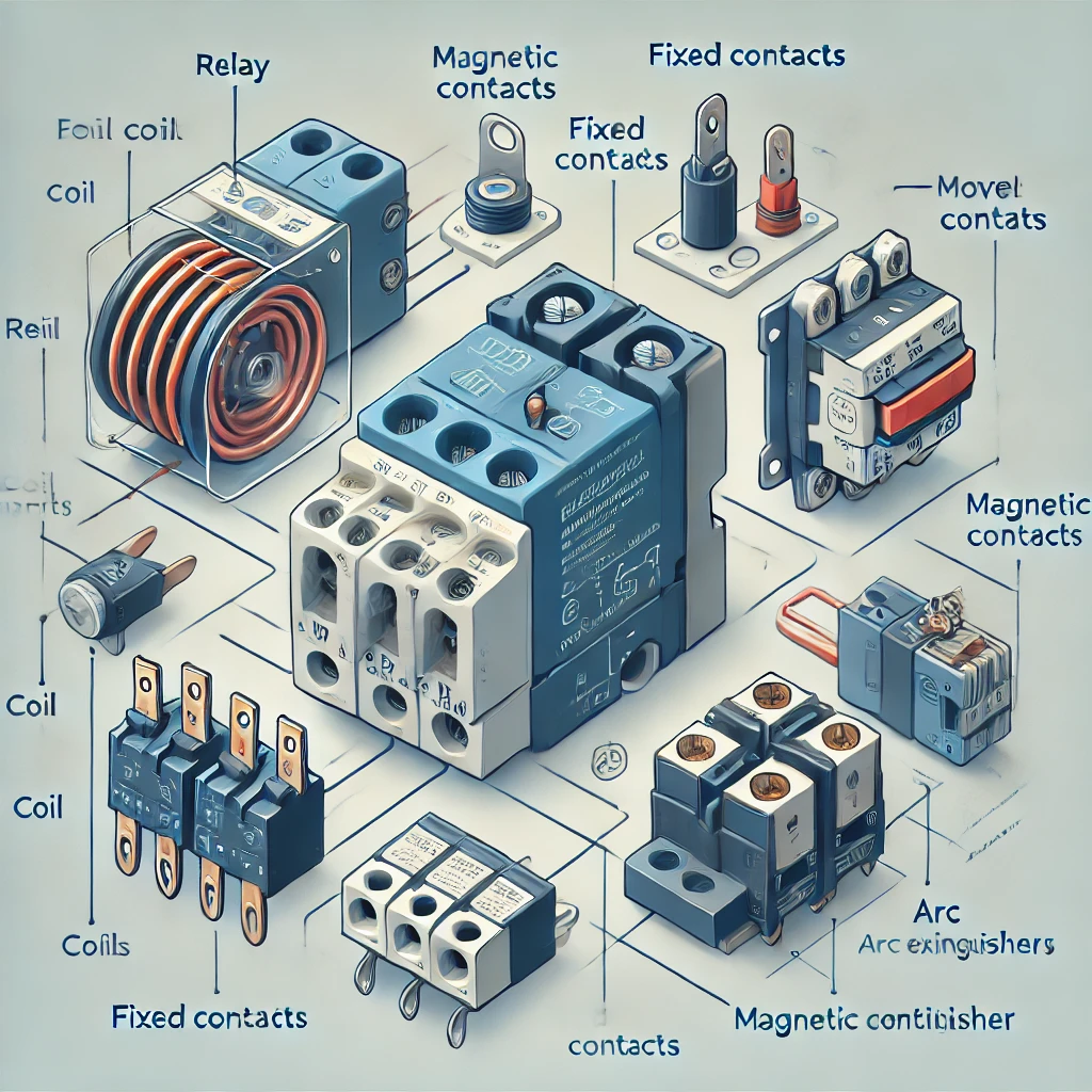 - 접점(Contacts): 전기 회로를 연결하거나 끊는 역할을 합니다.