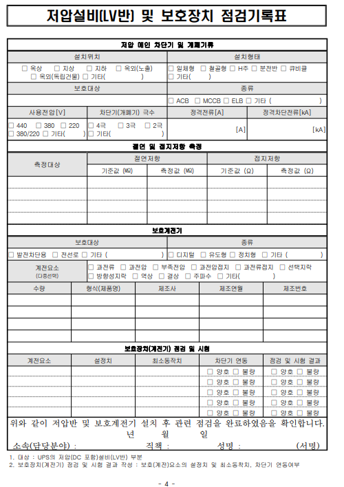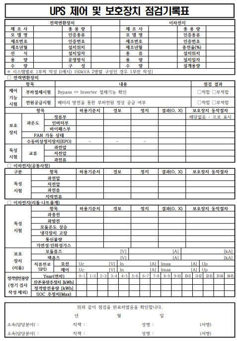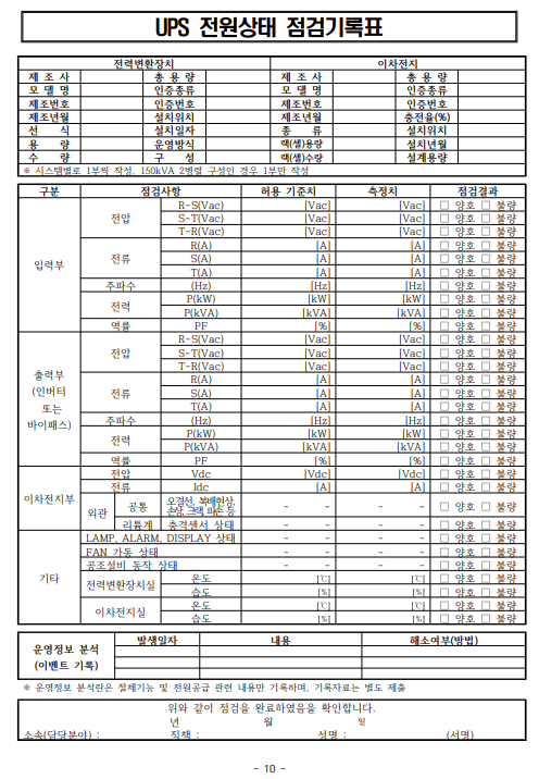 UPS 정기 검사 주요 항목(전기안전공사 서식 참고)