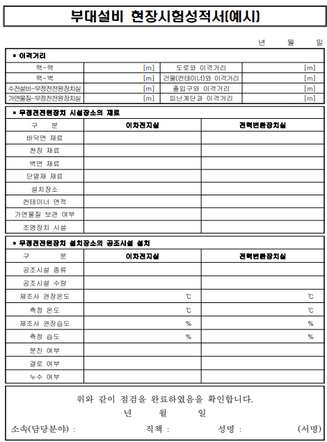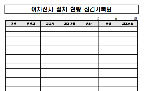 - 검사 주기: 옥내(일반인 출입건물) 설치 또는 이차전지 용량이 1,000kWh 이상인 경우 1년마다,
