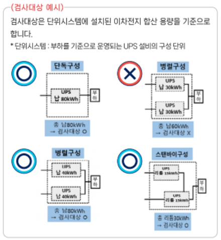 그 이외에 설비는 2년마다 정기검사 대상 - 대상 UPS 용량: 이차전지 종류 및 용량에 따라 나누어 짐.